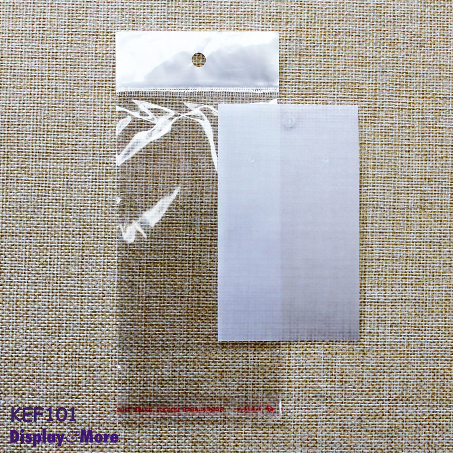 blank plastic, measures approximately 6 x 10cm. Have 2 holes for earrings. Each comes with a matching crystal clear seal bag. Both cards and bags have peg hole for retail display.