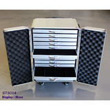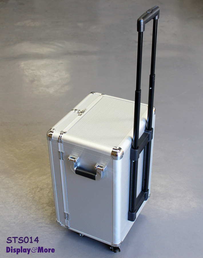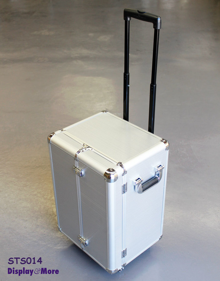 This is a premium quality, attractive aluminum rolling jewellery travel carrying cabinet case, made for professional jewelers.