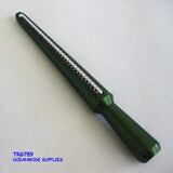 A premium quality solid metal grooved graduated ring sizer stick has a precise scale on both sides, each side has 2 markings. One side has Australian size and US size. The other side has circumference.